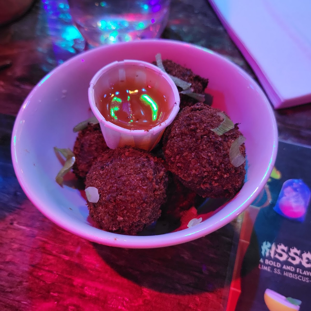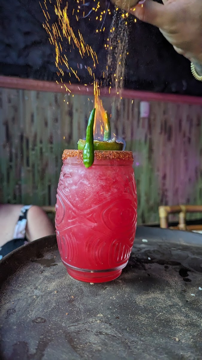 This place was amazing! We didn’t have food but the drinks were awesome. Friendly staff with great recommendations for the city- and such a cool atmosphere! I had the “Tamarindo” cocktail. We also tried some shots that were lit on fire