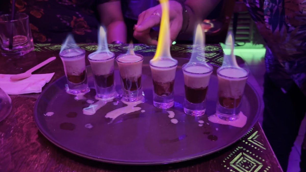 My partner and I had an amazing experience here last Friday! We discovered it pretty close to close, maybe 1 am, but the vibes are amazing, the decorations, the drinks, the music is all really fun and very tiki. Our server Tevon was super friendly, and the shots he made us were great! We found out he actually was the former bartender and new owner, and that earlier in the night there had been belly dancing. This place truly stands out from the rest of the bars in that area, and I highly recommend for a date night or for a fun night out with friends. Spots to sit and be cozy and room to dance!
